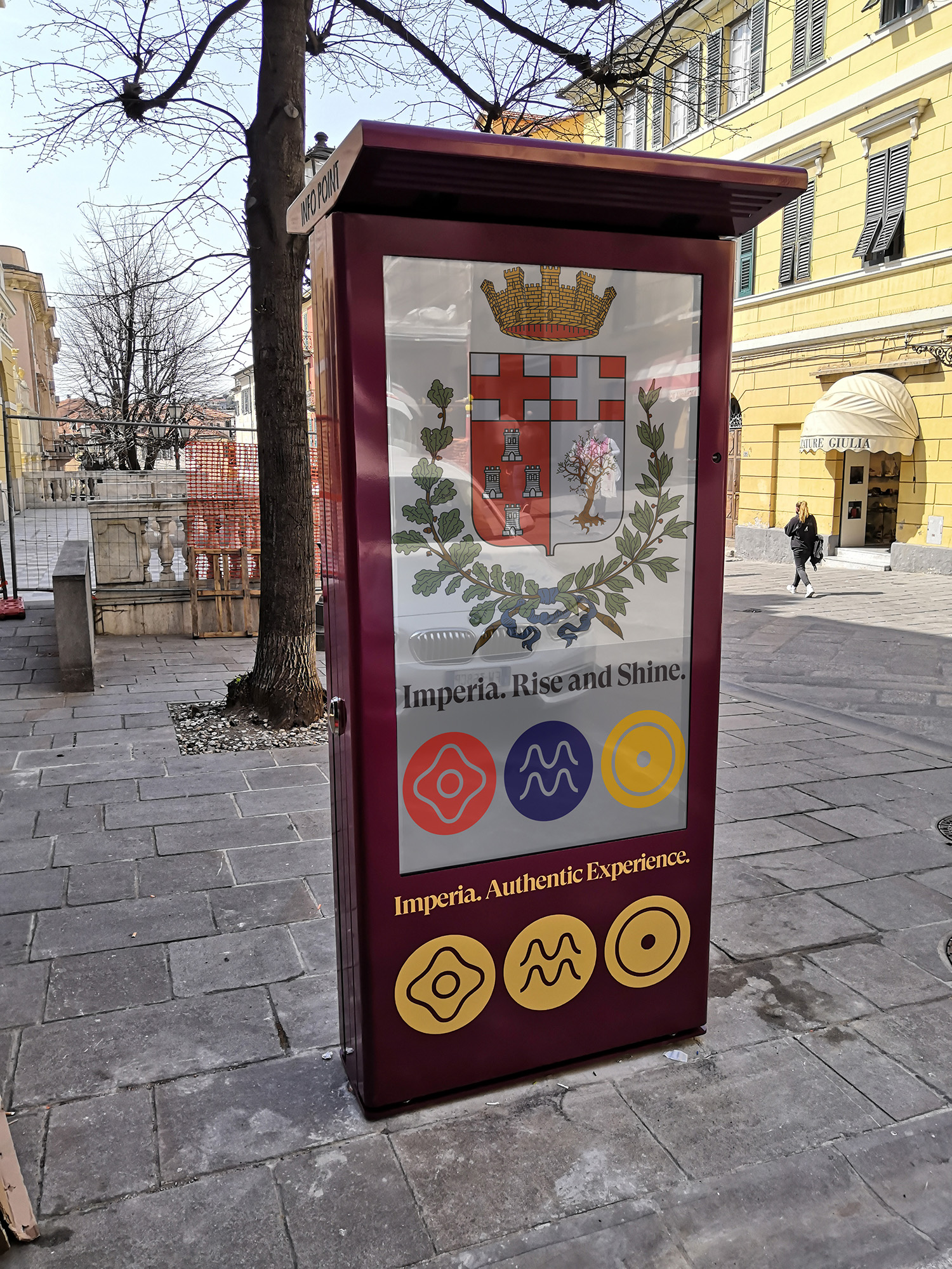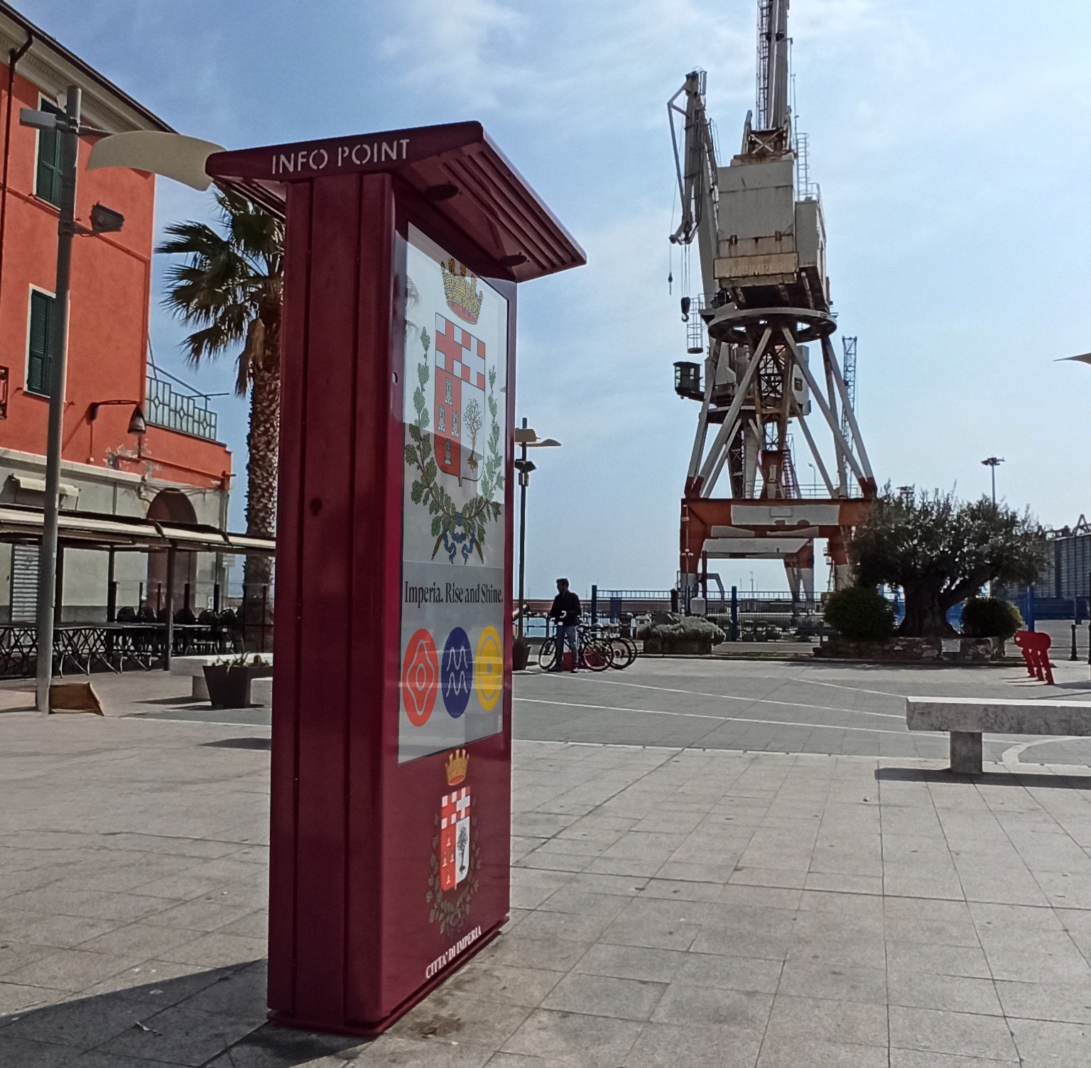 Realizzati completamente in acciaio inox, sono stati verniciati con una speciale vernice per zone marittime e con i colori rappresentativi di Imperia.